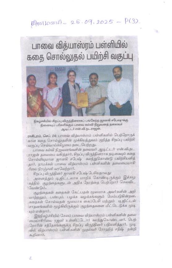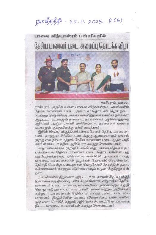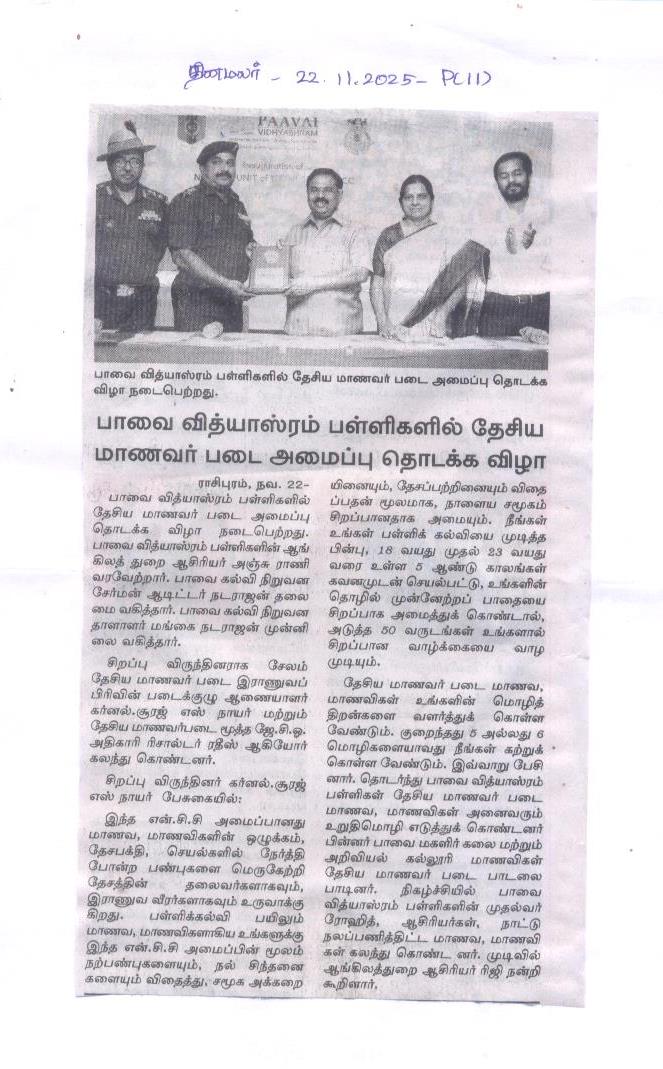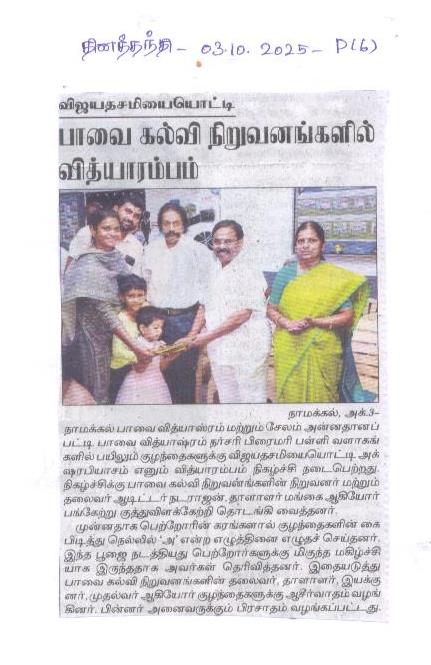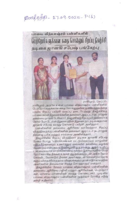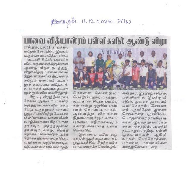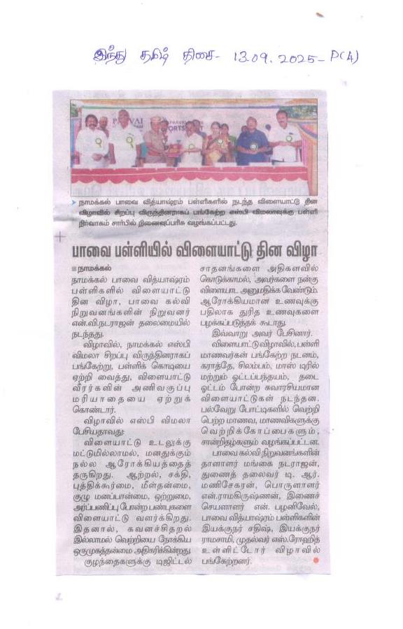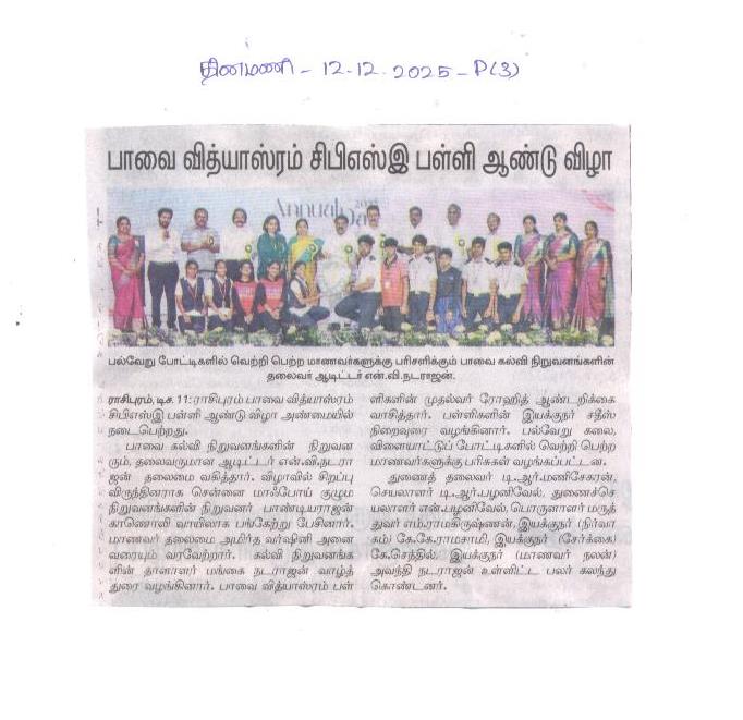 Paavai Vidhyashram Global School is a CBSE (Central Board of Secondary Education) Syllabus based International School for Kindergarten to 12th Grade that focusses on holistic development of Children and working on turning everyone to be a Leader.